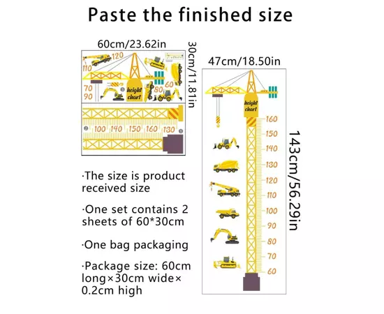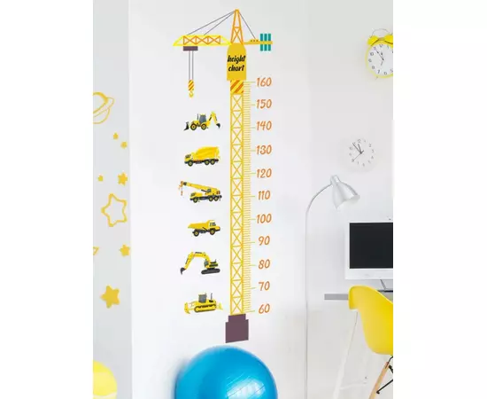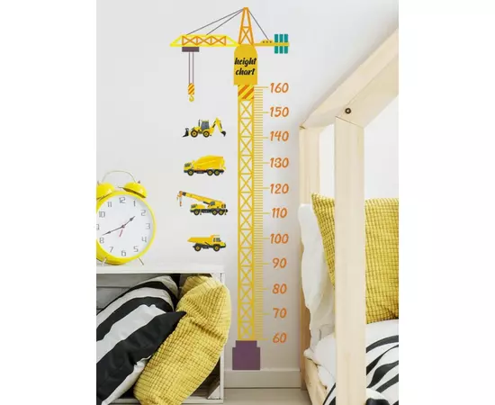 Sticker Perete Autocolant cu Centimetru pentru Copii - Excavator
