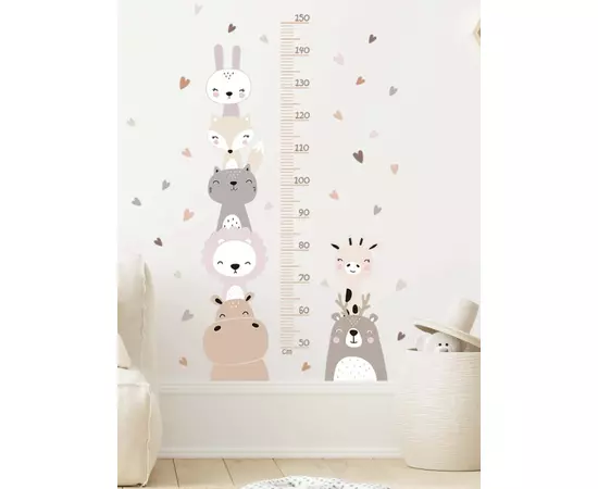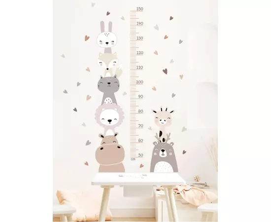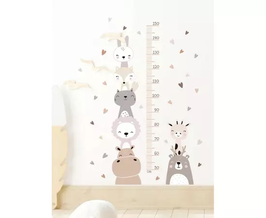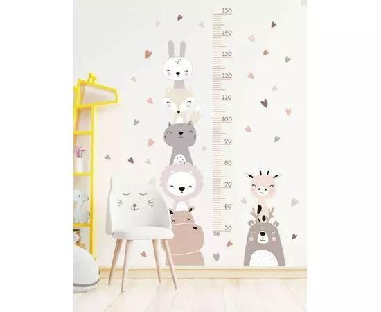 Sticker Perete Autocolant cu Centimetru pentru Copii - Inimioare si Animale - 05751