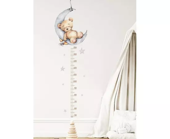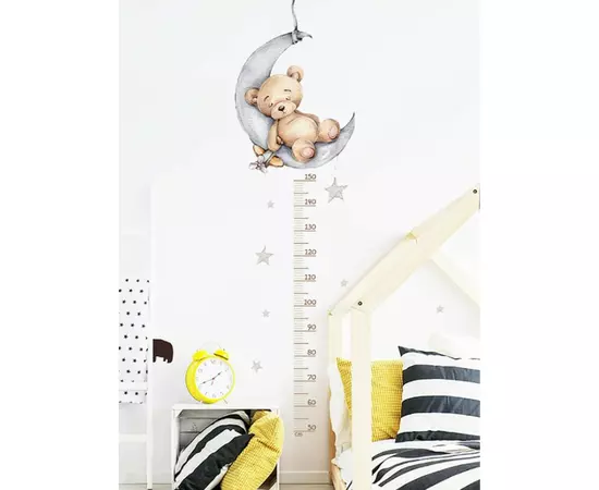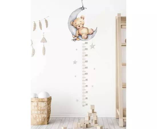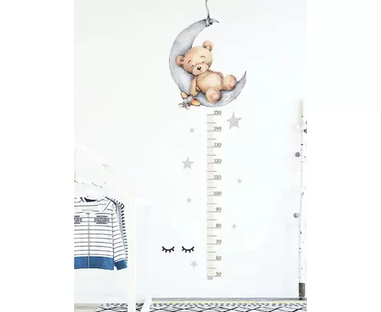 Sticker Perete Autocolant cu Centimetru pentru Copii - Ursulet pe Luna