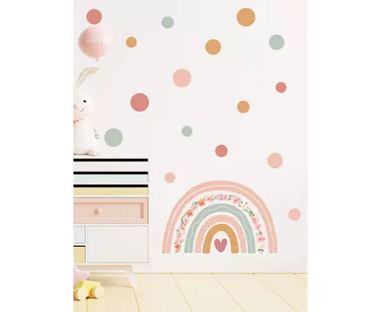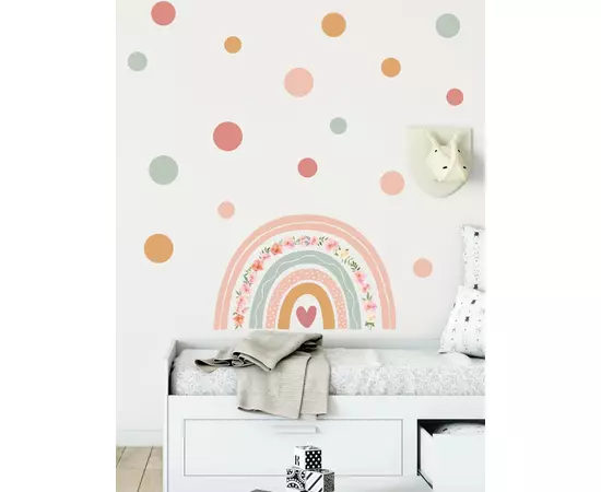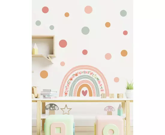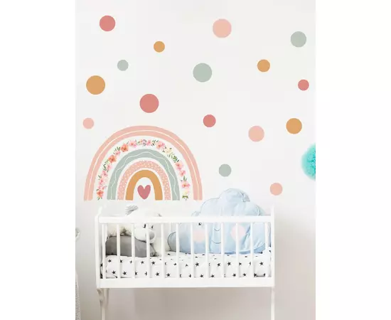 Sticker Perete Autocolant Curcubeu si Buline Pastelate