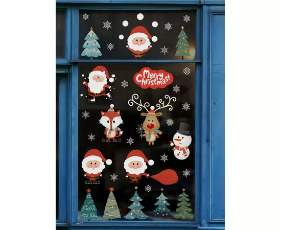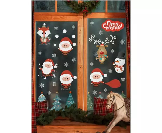 Sticker Geam Craciun model Brazi si Mos Craciun 58x60cm
