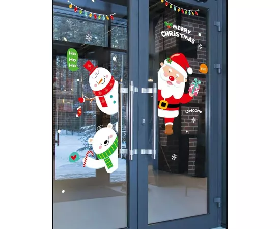 Sticker Geam Model Mos Craciun si Om de Zapada