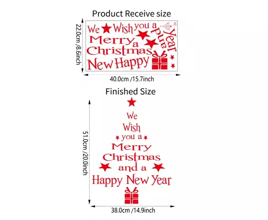 Sticker Perete Autocolant Decoratiune Craciun, Merry Christmas, 22x40cm, model Geam - 35151