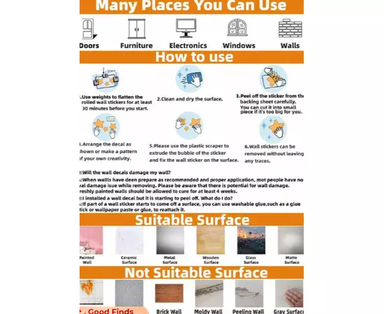 Cu ajutorul imaginației, poți combina mai multe stickere de perete și îți poți crea propria poveste! Potrivite pentru orice camera din casa ta, poți alege un sticker de perete si sa decorezi in mod ingenios. Alege stickerele care te reprezintă din colecția noastră variata si oferă un nou aspect casei tale! Stickere de perete sunt concepute pentru a fi utilizate pe suprafețe netede si uscate.