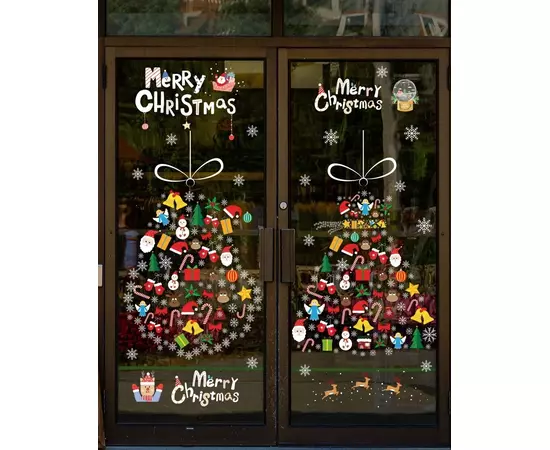 Sticker Geam Figurine Mici cu Motive de Craciun