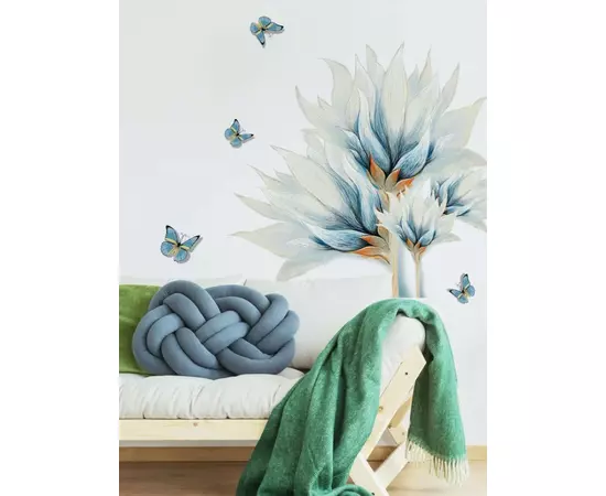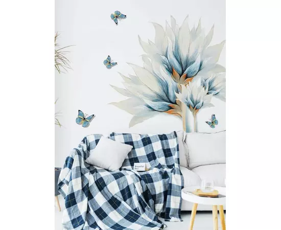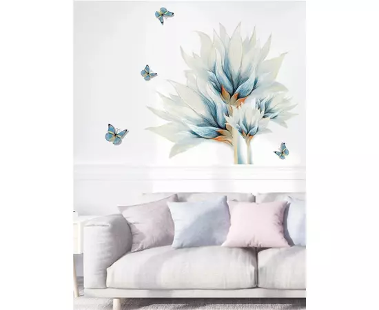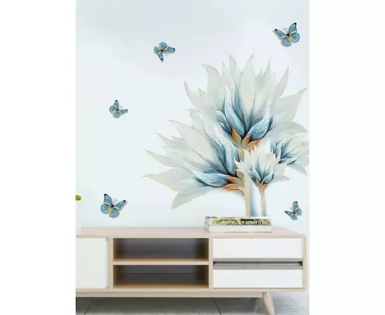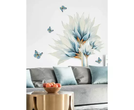 Sticker Perete Autocolant Floare Albastra si Fluturi
