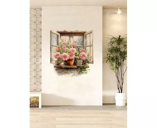 Sticker Perete Autocolant Flori in Ghiveci la Fereastra - 66654