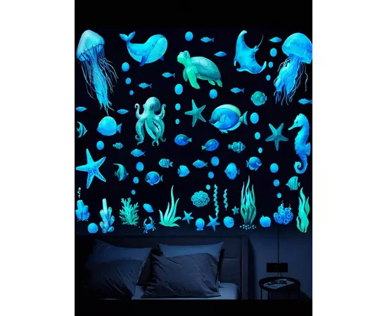 Sticker Perete Autocolant Fosforescent cu Pesti - 35285