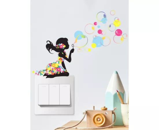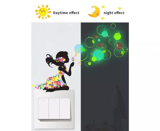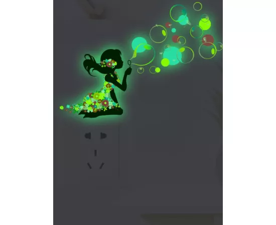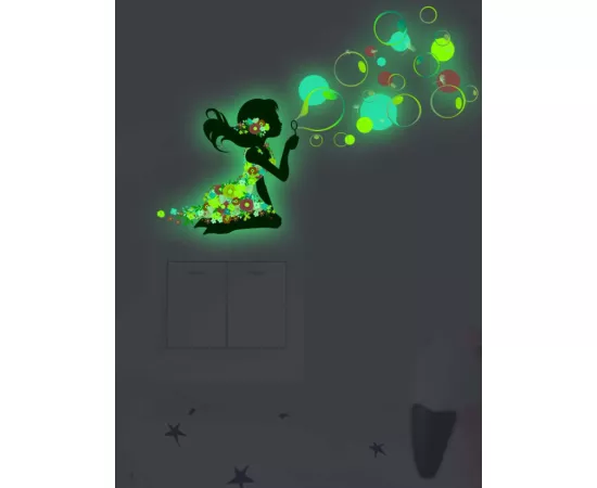 Sticker Perete Autocolant Fosforescent Fetita si Baloane 16x22cm - 21220
