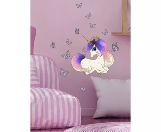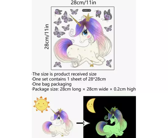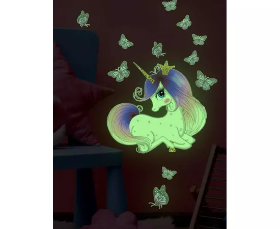 Sticker Perete Autocolant Fosforescent Unicorn cu Fluturi 28X28 - 55145