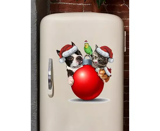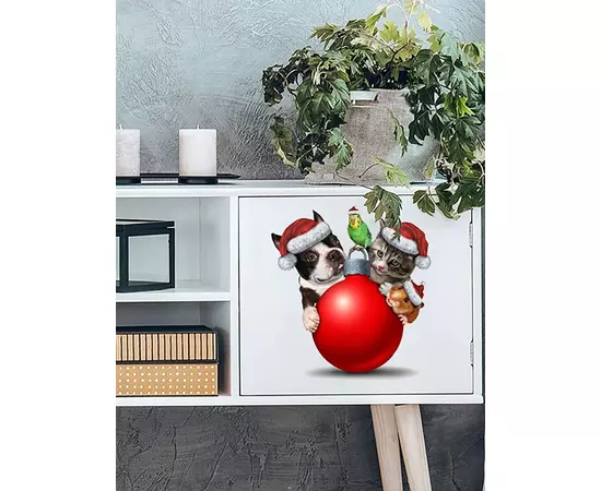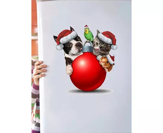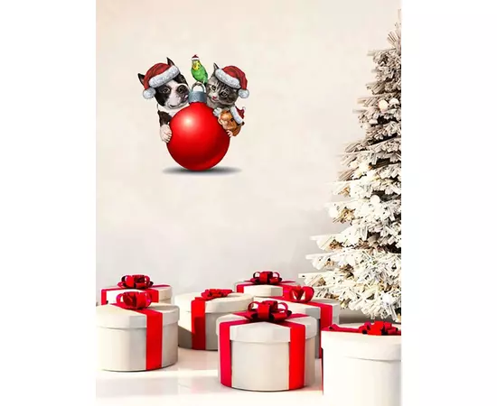 Sticker Perete Autocolant Glob de Craciun Rosu si Animalute