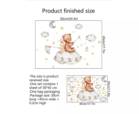 Sticker Perete Autocolant Iepuras si Urs - 45 x 62 cm