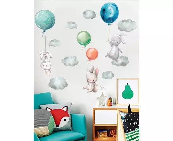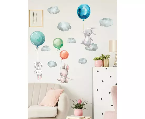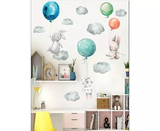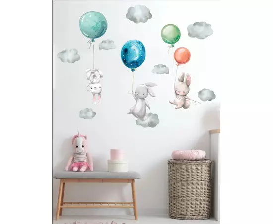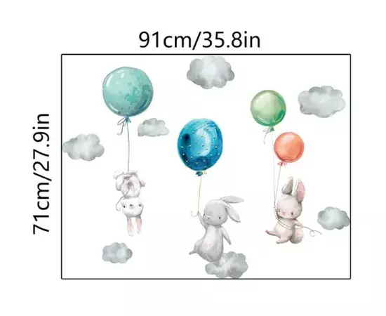Sticker Perete Autocolant Iepurasi cu Baloane - 71x91cm
