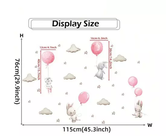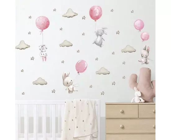 Sticker Perete Autocolant Iepurasi cu Baloane 90x30cm - 13410
