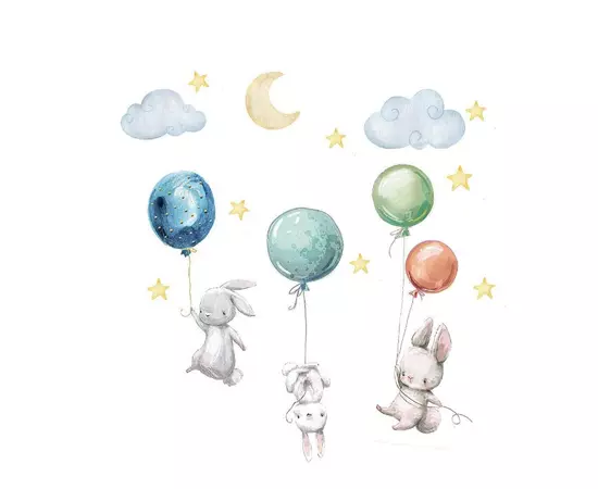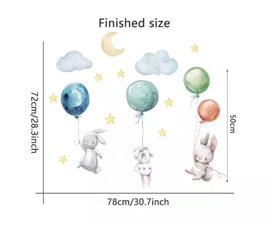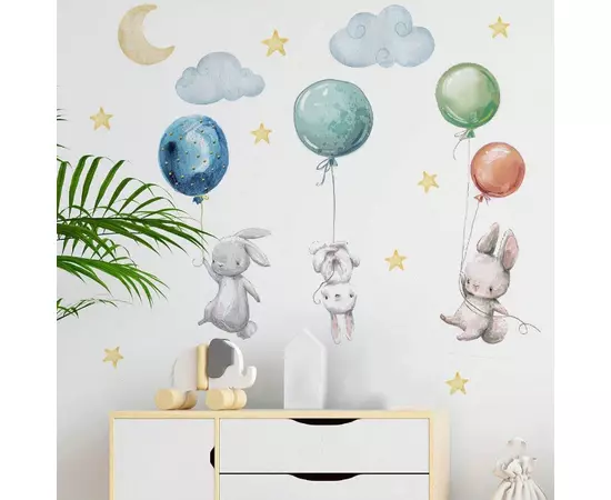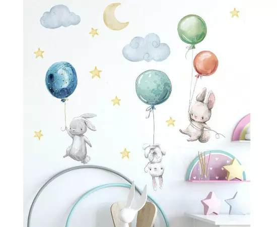 Sticker Perete Autocolant Iepurasi si Baloane, 72x78cm - 33240