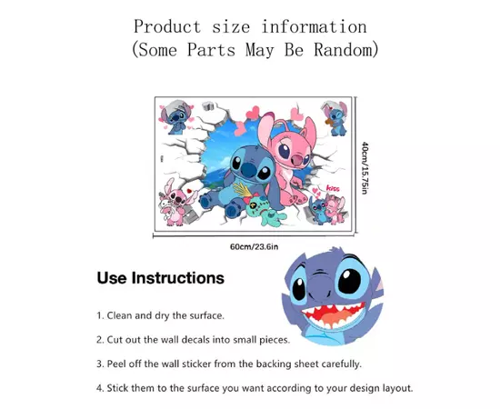 Cu ajutorul imaginației, poți combina mai multe stickere de perete și îți poți crea propria poveste! Potrivite pentru orice camera din casa ta, poți alege un sticker de perete si sa decorezi in mod ingenios. Alege stickerele care te reprezintă din colecția noastră variata si oferă un nou aspect casei tale! Stickere de perete sunt concepute pentru a fi utilizate pe suprafețe netede si uscate.