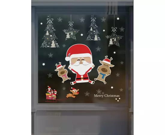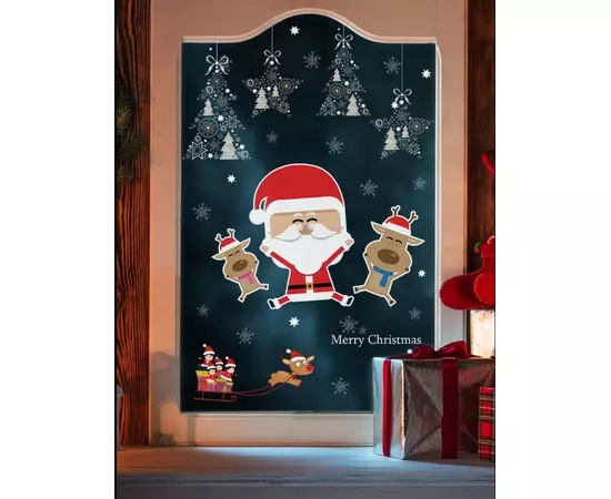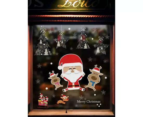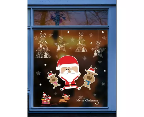 Sticker Geam Mos Craciun cu Reni