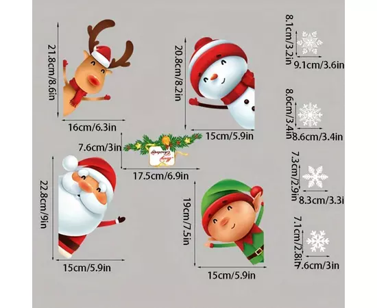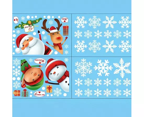 Sticker Perete Autocolant Mos Craciun, Spiridus si Om de Zapada, 4 buc, 35x25cm, model Geam - 10713