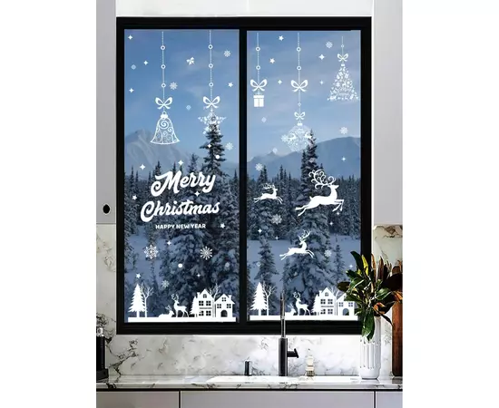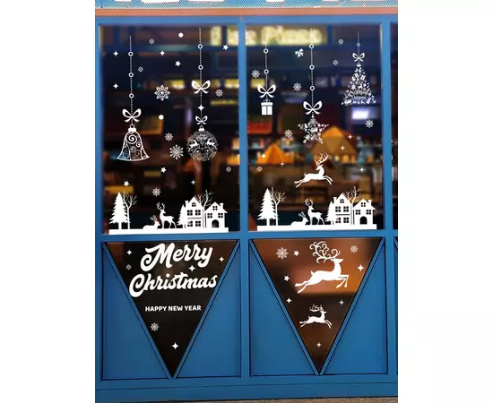Sticker Perete Autocolant Peisaj de Oras cu Motive de Craciun model pentru geam