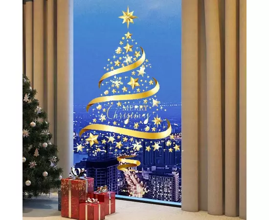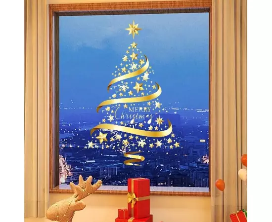Sticker Perete Autocolant Pom de craciun, 45x60cm, model Geam - 00768