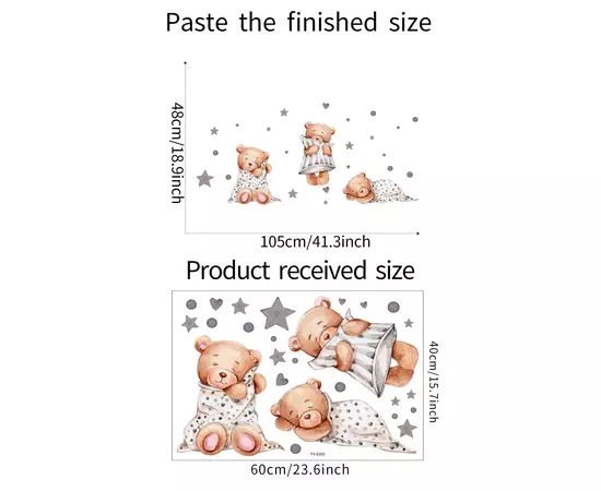 Sticker Perete Autocolant Trei Ursuleti Inveliti cu Lenjerii Dorm 105x48cm
