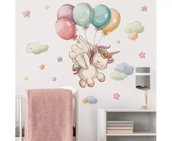 Sticker Perete Autocolant Unicorn si Baloane - 52x65cm - 92020