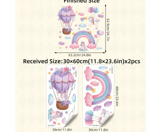 Sticker Perete Autocolant Unicorn si Curcubeu - 60x30cm - 295527