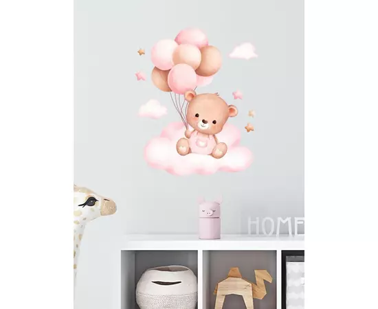 Sticker Perete Autocolant Ursulet cu Baloane Roz