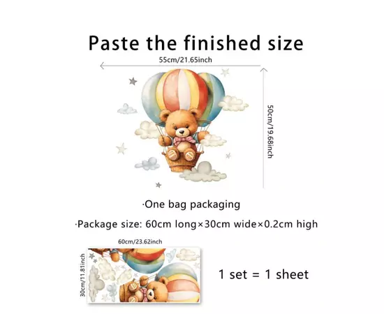 Sticker Perete Autocolant Ursulet in Balon, 55x50 - 061009