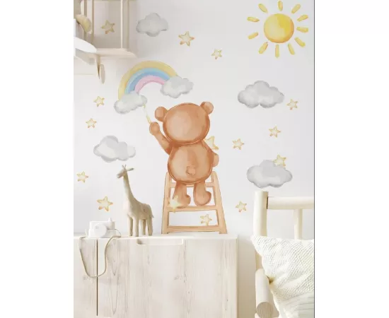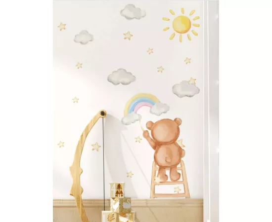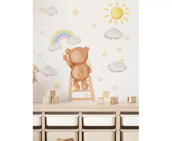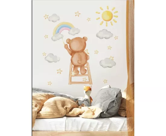 Sticker Perete Autocolant Ursulet si Curcubeu - 63 x 66 cm