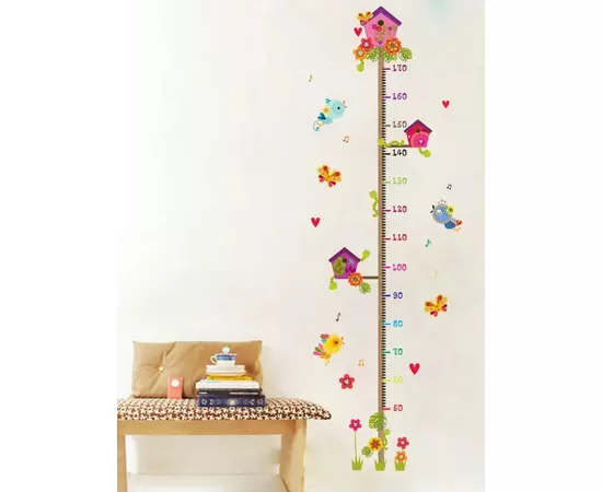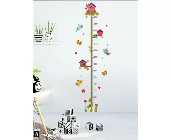Sticker Perete Autocolant cu Centimetru pentru Copii cu Pasari si Flori