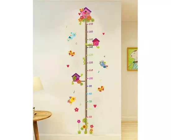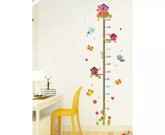 Sticker Perete Autocolant cu Centimetru pentru Copii cu Păsări și Flori