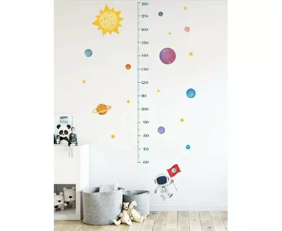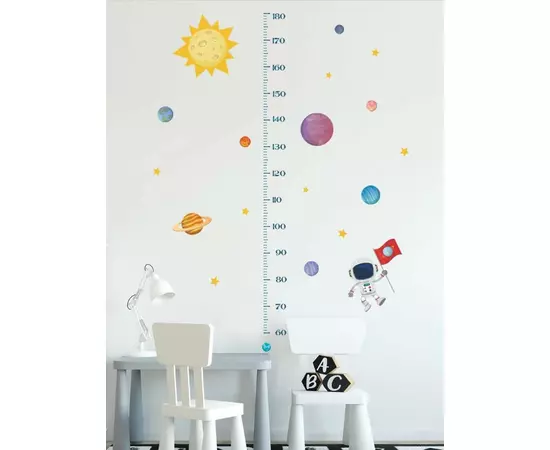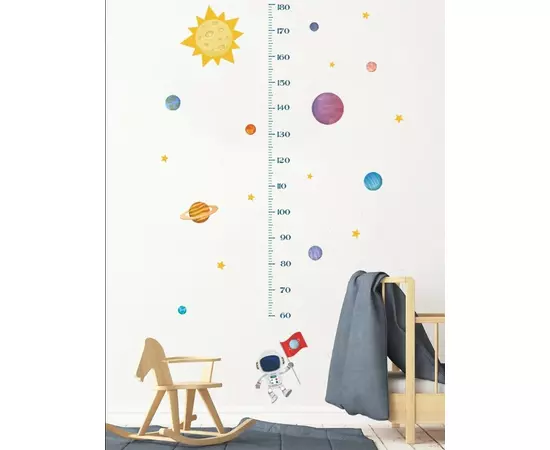 Sticker Perete Autocolant cu Centimetru pentru Copii - Planete