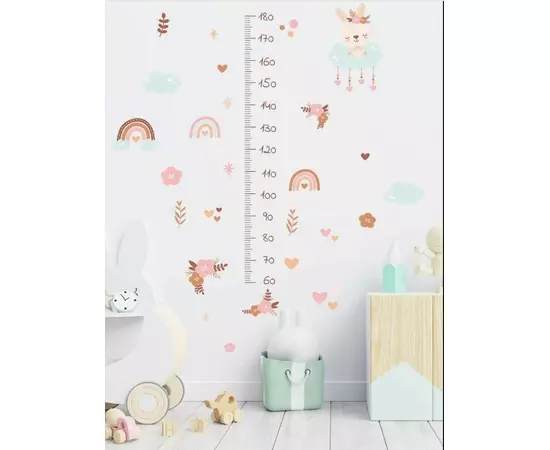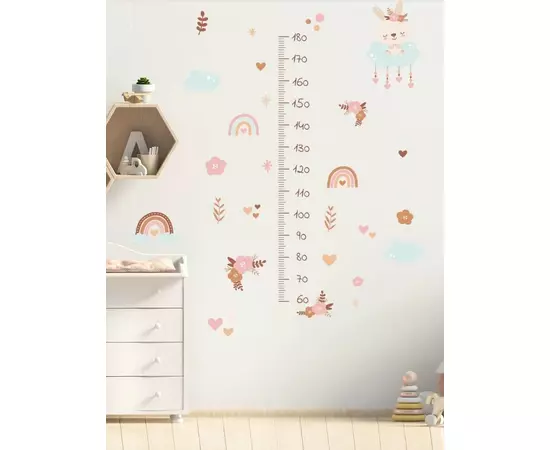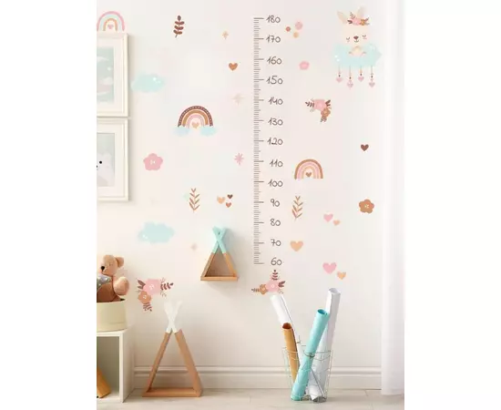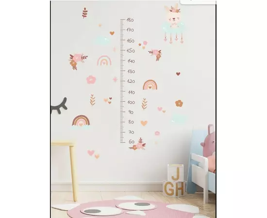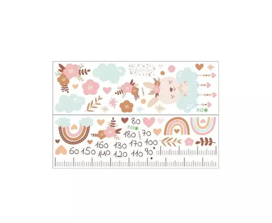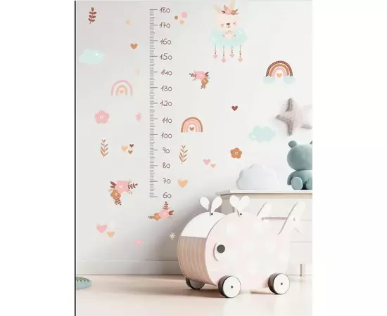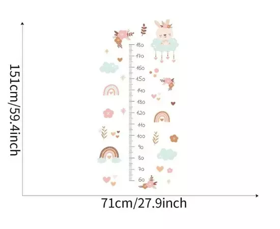 Sticker Perete Autocolant cu Centimetru pentru Copii - Flori Roz 71x151cm