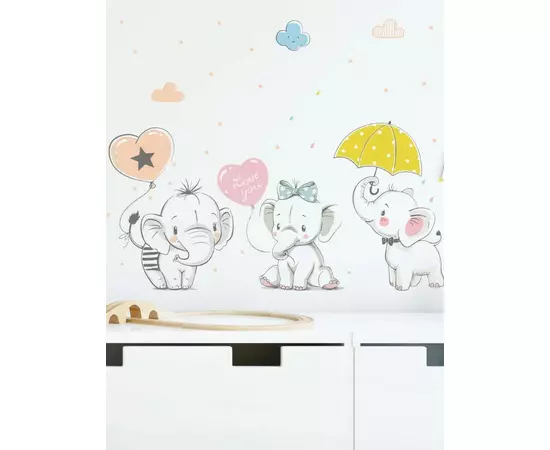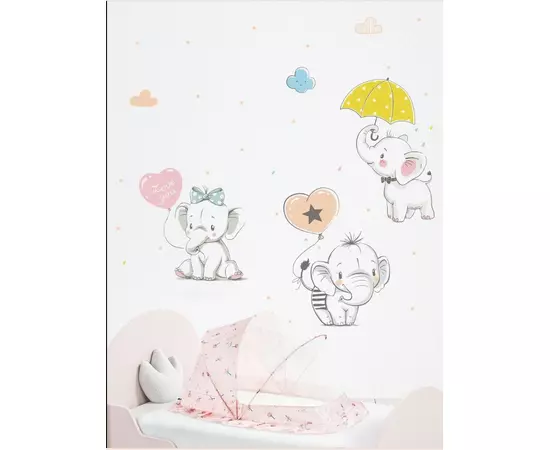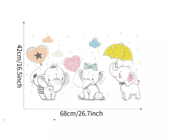 Sticker Perete Autocolant Elefanti in Ploaie 42x68cm