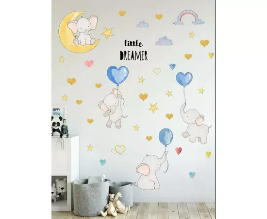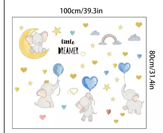 Sticker Perete Autocolant Elefanti cu Baloane 80x100cm