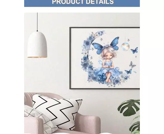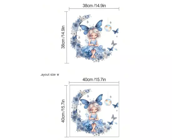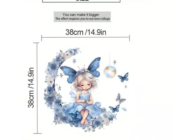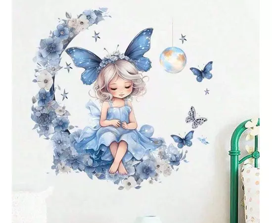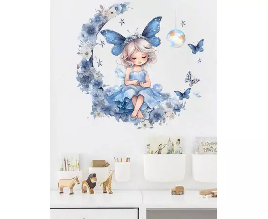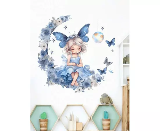 Sticker Perete Autocolant Fetita pe Luna, cu Fluturi 38x38cm - 68151