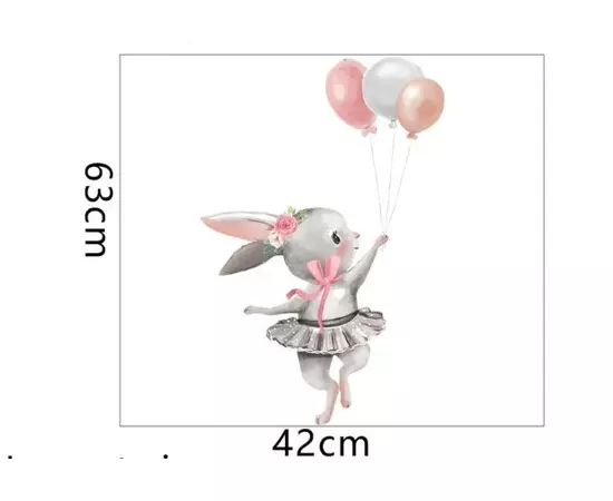 Sticker Perete Autocolant Iepuras cu Baloane 42x63cm