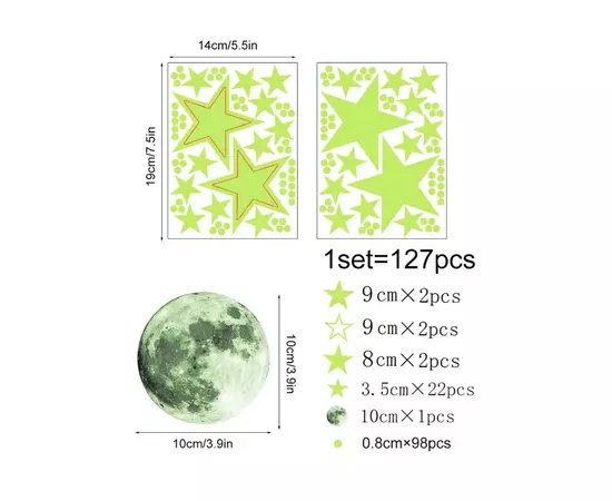 Sticker Perete Autocolant Stelute Fosforescente Set 127 Buc