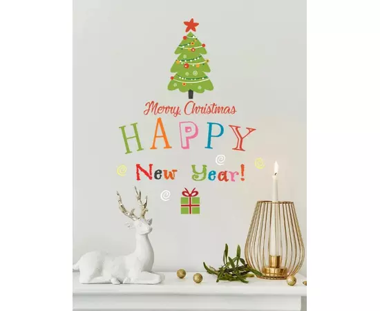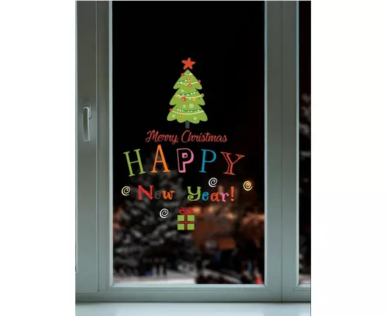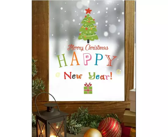 Sticker Geam Craciun model Brad - Happy New Year 33x43cm