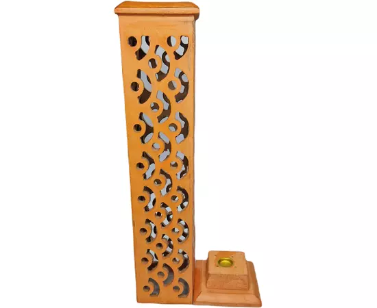 Suportul pentru betisoare parfumate din lemn, fabricat in India, este un obiect de decor elegant si functional, ideal pentru a afisa si a aprinde betisoarele parfumate preferate. Suportul poate fi folosit in orice incapere, inclusiv in birou sau in camera de zi, si poate fi un cadou minunat pentru oricine iubeste aromele parfumate si arta traditionala indiana.