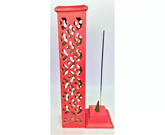 Suport Lemn Betisoare Parfumate si Conuri Obelisc Rosu