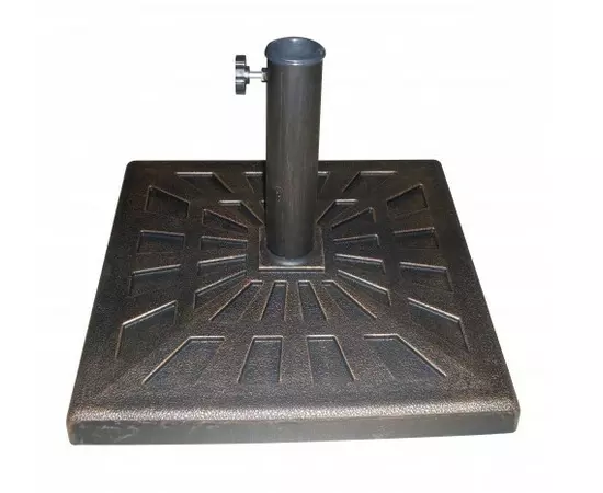 Suport pentru umbrele de gradina, confectionat din metal, pentru o buna stabilitate. Are forma patrata cu latura de 50.5 cm si inaltimea 33 cm.