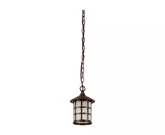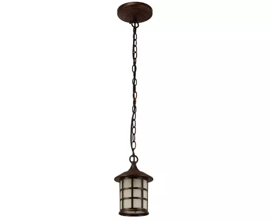 Suspensia este un corp de iluminat clasic, cu structura din aluminiu, finisaj maro si abajur din sticla translucida.