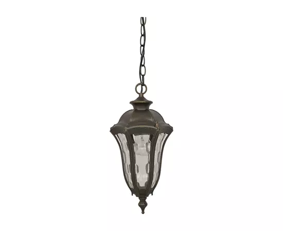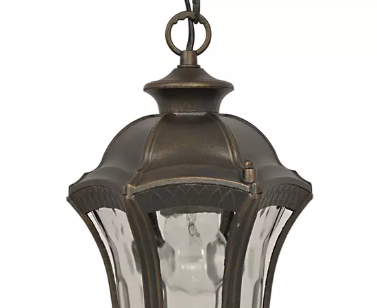 Suspensia este un corp de iluminat suspendat, ce se utilizeaza la exterior. Aceasta este turnata din aliaj de aluminiu sub presiune, iar finisajul este negru antic cu abajur din sticla transparenta amprentat. Abajurul va oferi o dispersie circulara a luminii pe perete.