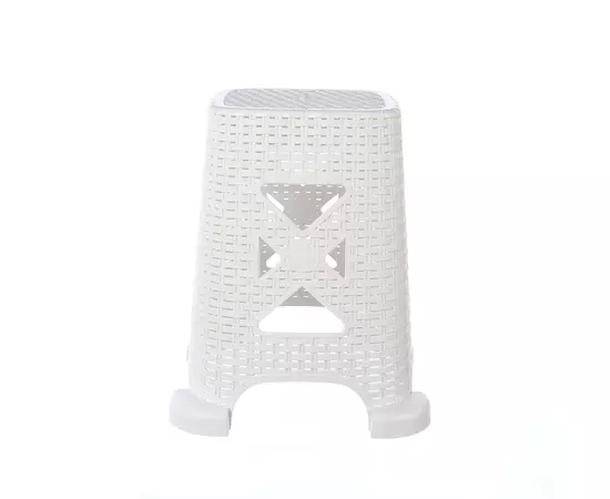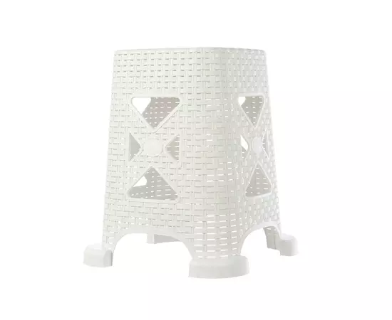 Taburet pentru gradina, plastic, imitatie ratan, alb
