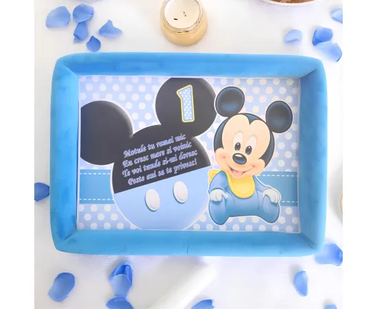 - tavita buretata imbracata in catifea cu imprimeu Minni Mouse si text(personalizabil)