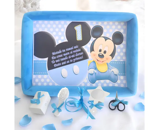 Tavita Mot, Buretata din Catifea cu 6 Piese - Baby Mickey Mouse Bleu - TPT94