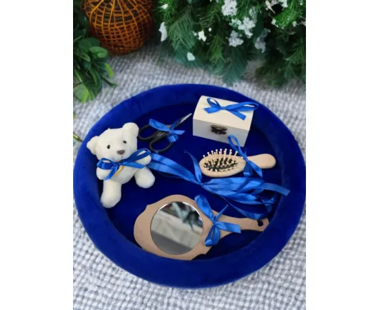 Tavita Mot/Turta, Buretata din Catifea cu 7 Piese - Albastra - TPT503