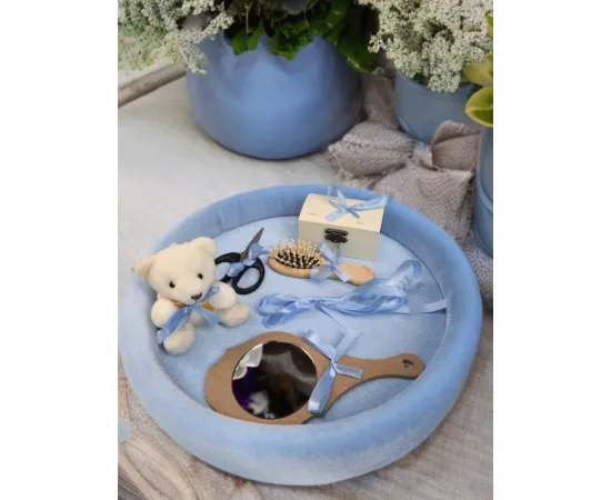 Tavita Mot/Turta, Buretata din Catifea cu 7 Piese - Albastru Deschis - TPT506
